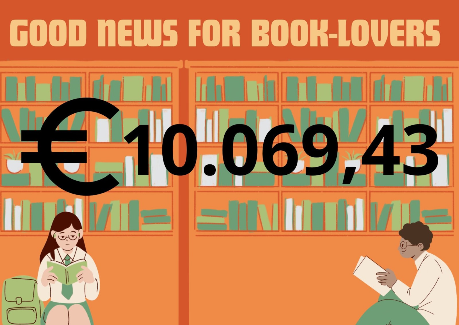 Al het geld is inmiddels op rekening gestort en wij gaan ons buigen over de boeken die we gaan aanschaffen. Als wij €20,00 per boek rekenen kunnen wij binnen school toch ongeveer 500 boeken gaan aanschaffen. Dit hadden wij nooit verwacht!